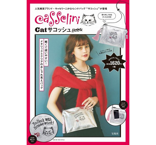 超人氣日本雜貨品牌「Casselini」,這次隨刊附贈特別設計的貓咪圖案刺繡肩背包,銀色的袋身再加上透明前袋的設計,不僅俏皮可愛更時髦有型;最棒的是,肩背帶可以隨心所欲調整長度,還可以將背帶取下當作一般手拿包、收納袋來使用!