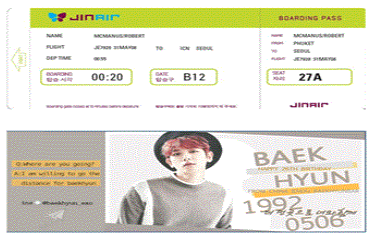 EXO-L 94就是狂,深怕全世界有任何一位朋友不知道,5月是EXO的小可愛邊伯賢生日!粉絲後援會特地準備80萬張「真航空」機票,背面印上邊伯賢的照片和生日應援,要全世界的朋友一起為邊伯賢慶祝!