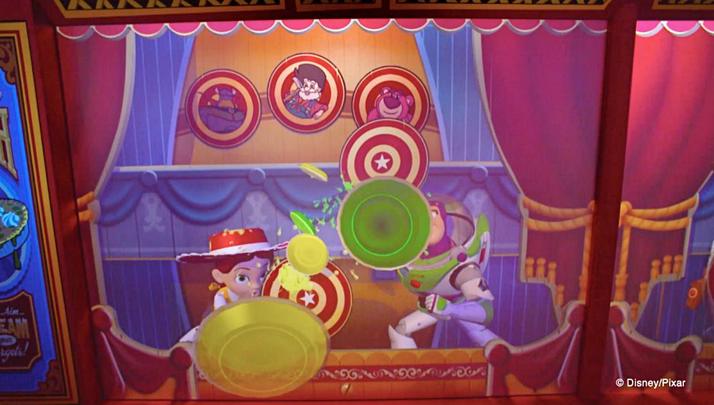 在設施內,《玩具總動員》的經典場景與可愛的胡迪、巴斯光年、抱抱龍與傘兵等角色將一一浮現在你眼前,不過遊玩時別看呆了,記得發動手上的射擊裝置瞄準射擊板,拿下高分哦!