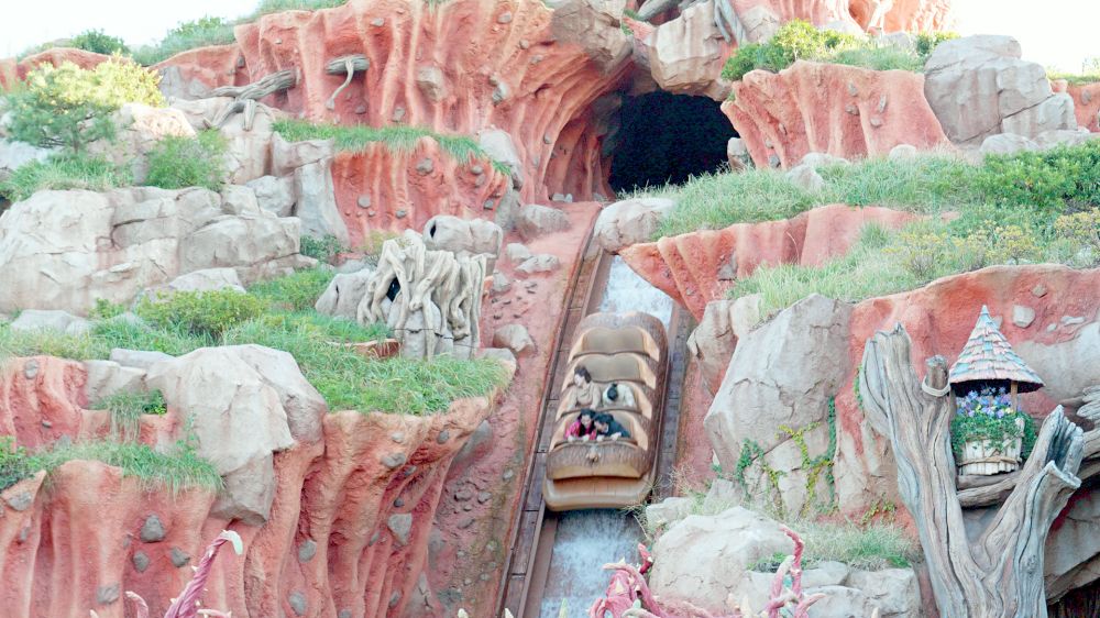 飛濺山是有點刺激的遊樂設施,遊客會乘著圓木舟進入小動物們的世界,在裡面看到可愛的造景。圓木舟總共會滑落4個斜坡,最後一個斜坡將從「瀑布頂端」俯衝而下。