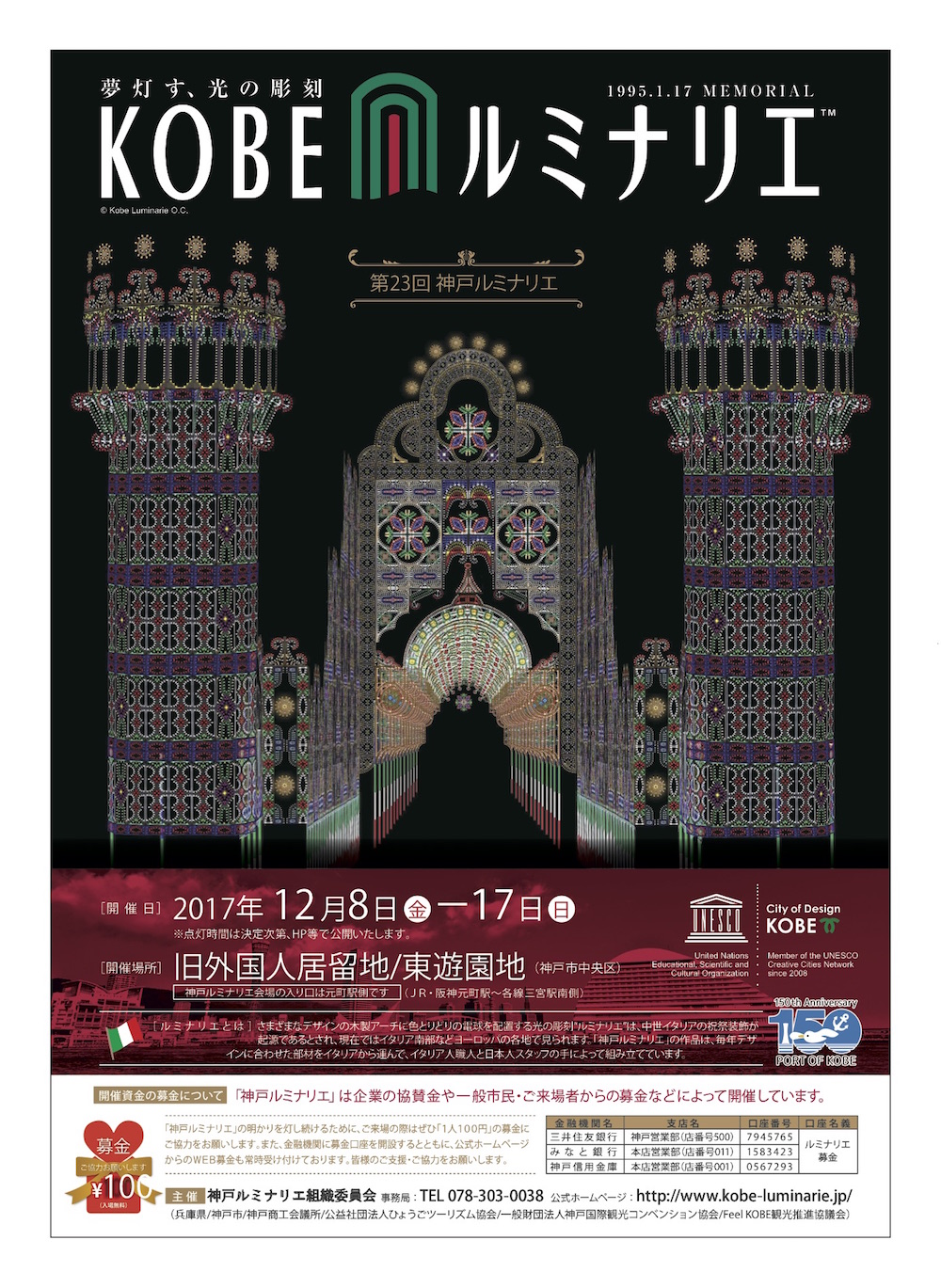 一年一度的「神戶冬季光雕秀」又即將到來啦!不知道大家對於這個點燈秀熟不熟悉?相信只要看到往年華麗壯觀的活動照片,就會有印象了。今年已經是第23年舉辦的「2017神戶LUMINARIE冬季光雕秀」,據說這回光雕作品比起過往更為盛大,準備將神戶的夜晚璀璨打亮。