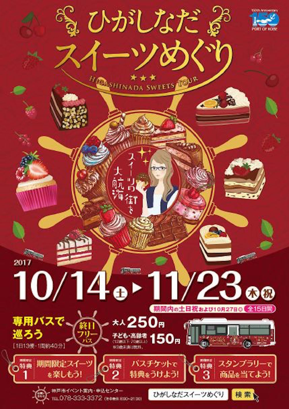 最近神戶推出了期間限定的東灘甜點之旅專用巴士,從10月14日起到11月23日為止,都可以搭乘過去大、吃、特、吃(笑),且於活動期間內於到各個店家用餐,出示車票還可享有優惠喔!