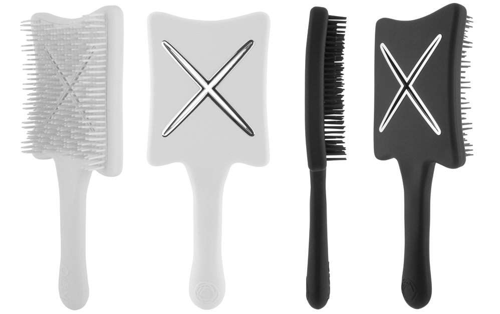梳子上有4種長短不同的梳齒,以棋盤般的方式排列,是根據傳統中醫針灸概念設計,邊梳頭還可以邊做穴位按摩。梳子後面的X型鏤空設計,在吹整時能讓熱風均勻散佈到各處,讓頭髮不會因為高溫而受損。