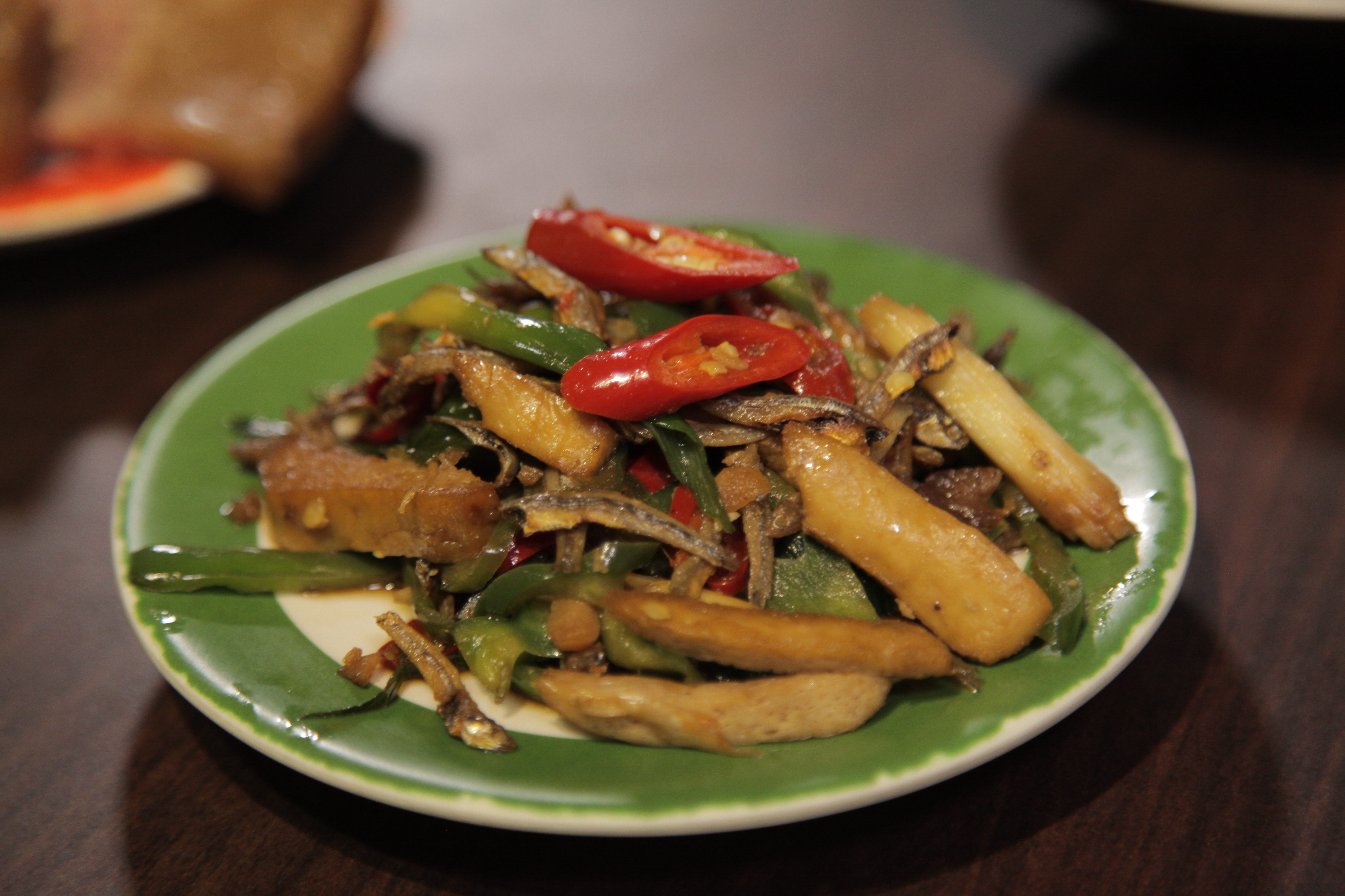 這是必點小菜!乾煸後的豆乾搭上紅綠辣椒及味道濃郁的小魚乾,味道鹹香,非常下飯。如果有點蔥油餅的話,可以將小魚包在餅中一起吃呦!