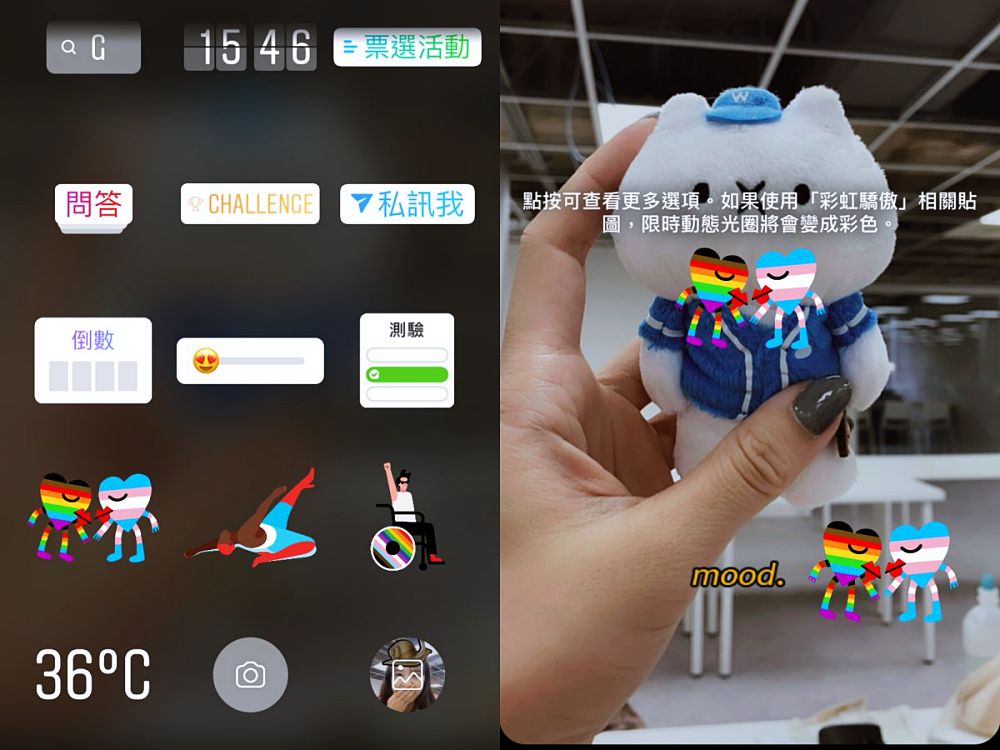 六月是同志驕傲月,Instagram限時動態也推出彩蛋特效,只要在限動中使用「彩虹驕傲」的相關貼圖,發佈後頭像邊緣就會出現一圈彩虹漸層,多則限時貼文中只要有一則使用限定貼圖,你的限時動態就會一直有彩虹光圈哦!(持續24小時)