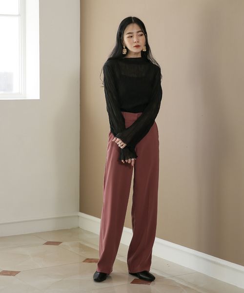 高腰的落地褲每個妞妞都該擁有一件!可以讓腿看起來超長,拉長身高比例。除了可以搭配襯衫或T恤之外,透配透膚的襯衫也很適合。不僅時髦,若隱若現的腰線看起來會很性感。
