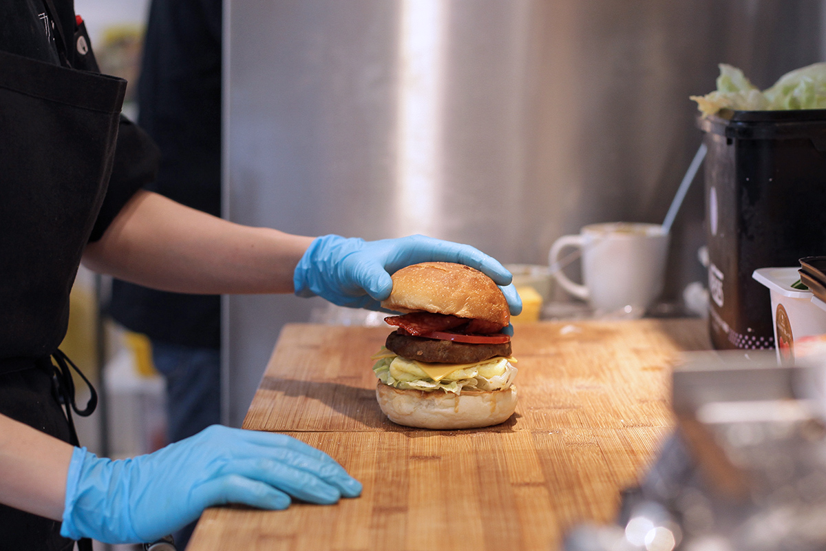 其中妞編輯最推薦的餐點為「雙倍好事牛肉堡」,生菜洋蔥、番茄小黃瓜、起司蛋、培根漢堡排真材實料層層堆疊,融入雲林地產花生醬(還可嚐到花生顆粒雙重口感),細緻綿密的花生醬讓漢堡排更加香郁多汁,一口咬下超銷魂!而這道牛肉堡還有一特別之處在於漢堡麵包是店家自創,澎鬆軟綿香氣十足,單吃也覺得很美味。