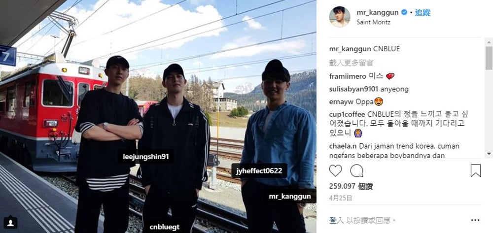 今年4月姜敏赫(妞編輯的本命)才在IG曬出和李正信、李宗泫去瑞士遊玩的照片,並在照片上標記正在當兵的鄭容和,覺得團魂大爆發呀!其他三個人是這麼惦記著鄭容和(感動)結果一轉眼竟然四個人都入伍了!