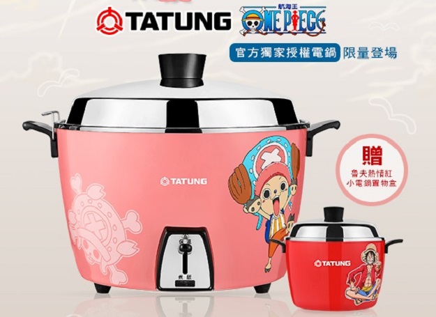 除了嚕嚕米MOOMIN的日系餐具,台灣大同電鍋同期推出日本航海王喬巴電鍋,派出呆萌可愛的喬巴,搶攻「今夏最療癒」居家用品排行榜,現在預購還有附贈魯夫熱情紅小電鍋置物盒喔~全台僅限量一千台的喬巴電鍋,海賊迷們手刀速度可要快嚕!