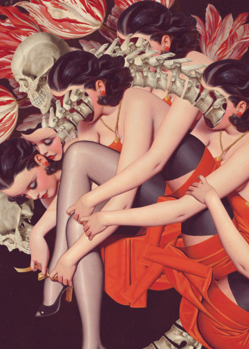 就是其中之一,他的作品特色就是將60年代風格的畫報女郎「肢解」後再拼貼,女郎美麗的妝容、華麗的背景配上毫不掩飾的人體內臟,這種令人不安的視覺衝擊正是讓我們深深著迷的原因...