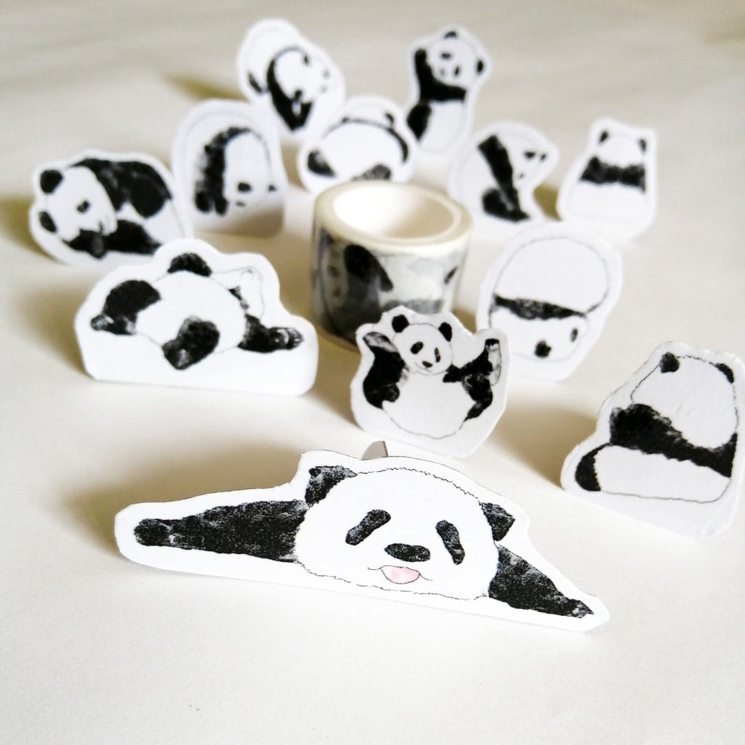 天阿~這些軟趴趴的熊貓也太可愛了吧~(尖叫)把超無害的熊貓以插畫方式呈現,不管貼在哪都超百搭!將熱收縮膜做為材料,將紙膠帶分成10小捲,不僅方便收納,更能讓喜愛文具的你跟同好交換款式!