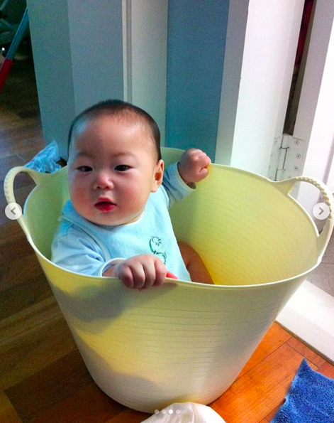 另外還有一組「萬歲」個人秀珍貴照片,當時可能才一歲的小小萬歲正獨自坐在洗衣籃裡,正排隊等著洗澡,擁有自由靈魂的他果然無法乖乖不動坐好,最後一張還試圖爬起來(傳說中的洗澡待機室?XD),網友瘋狂留言大呼:「在籃子裡超可愛!」「果然寶寶時就是調皮鬼」、「再多放一點照片出來吧~」