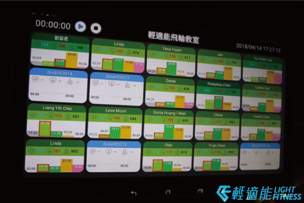 而騎乘飛輪時,提升心率值需要有阻力及轉速的搭配,輕適能運動空間首次結合了心率手環以及手機APP,將其飛輪教室打造成「心率燃脂飛輪教室」,在場館內提供心率手環,讓學員在教練的帶領下,能透過教室內螢幕清楚看到課堂中自己以及大家的心率狀況,教練也能從系統上了解所有學員的狀態,明確的給予目標、指令。