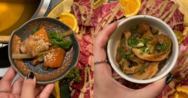 湯頭的部分皆為「現熬」,總共有四款湯底,分別為「柚子鹽昆布鍋」、「和風味噌湯」、「日式豚骨湯」和「四川擔擔湯」,妞編輯大推「四川擔擔湯」,不僅使用店家自炒的辛香料,同時還放有爆香過的肉末,吃起來有回甘的辣感,但卻不死辣,妞妞們可任選兩種湯底!