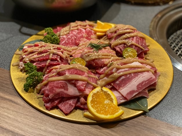 肉品的部分店內提供超過70種的高檔食材,嚴選Prime等級的冷藏濕式熟成牛肉,從肋眼、肋眼心到澳洲和牛等肉品應有盡有,妞編輯這次吃的品項有「牛五花」、「牛舌」、「牛板腱」、「肋眼心」和「沙朗」,如果不吃牛的妞妞們,也可選擇「宜蘭櫻桃鴨胸」、「伊比利豬頰角切」、「松阪豬」、「紹興雞腿肉」和「溫體雞菲力」等,每款肉質都有品質保證!