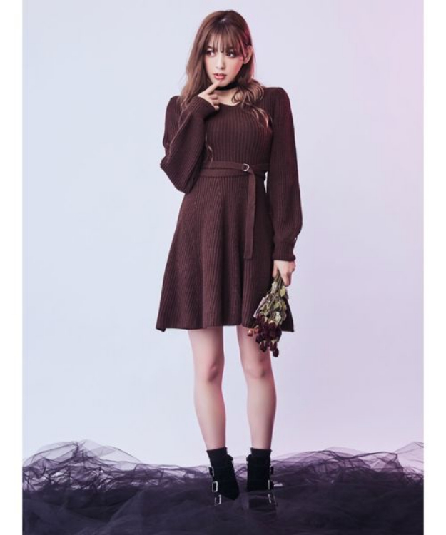 容易顯胖的針織洋裝就是要挑這種款式!附有腰帶呈現腰圍,傘狀的裙子可以遮掩肉肉的屁股和大腿,澎澎袖可以遮掉手臂的肉,這件根本是肉肉女孩的救星!