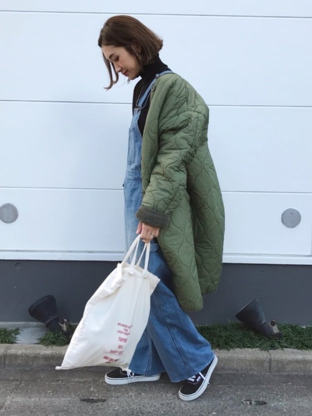 妞編輯發現最近日本超級流行這種縫線綠色外套,不管是長版還是短版的都很多人穿,內裡的鋪綿讓寒風吹來也不覺得冷。