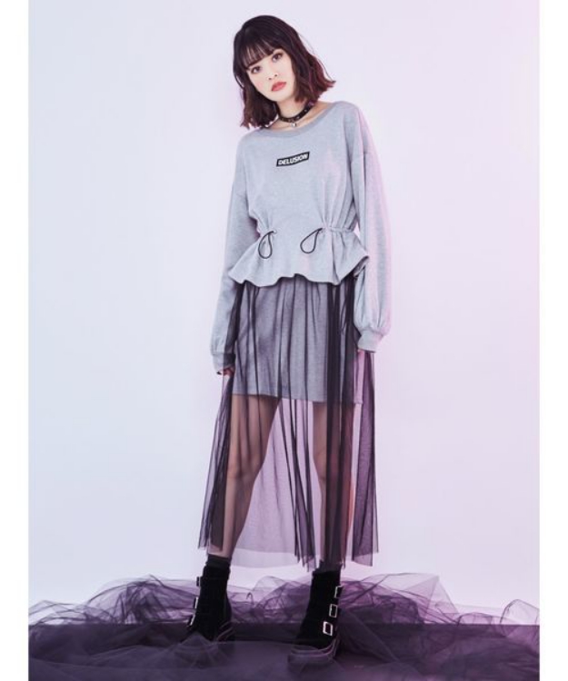 厚底黑色短靴真的很百搭,但是下半身的搭配拿捏很重要,一不小心就會看起來比例很差!靴子上的扣帶設計增添了叛逆的風格,配上灰色連身裙×黑色紗裙×頸鍊,看起來就是搖滾女孩!