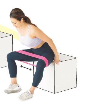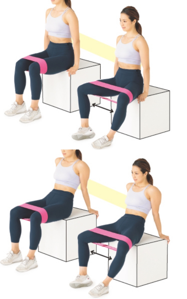 接下來的動作都是以坐跟躺為基礎,所以維持骨盆的穩定非常重要!臀外展三式分別為將骨盆前傾、中立與後傾,差別只在於角度不同而已。套好彈力帶後坐在適當高度的椅子上,把雙腳打開到彈力帶繃緊,坐定穩定好核心後開始開合雙腿,動作中要記得調整呼吸並感受臀部肌肉的收縮!