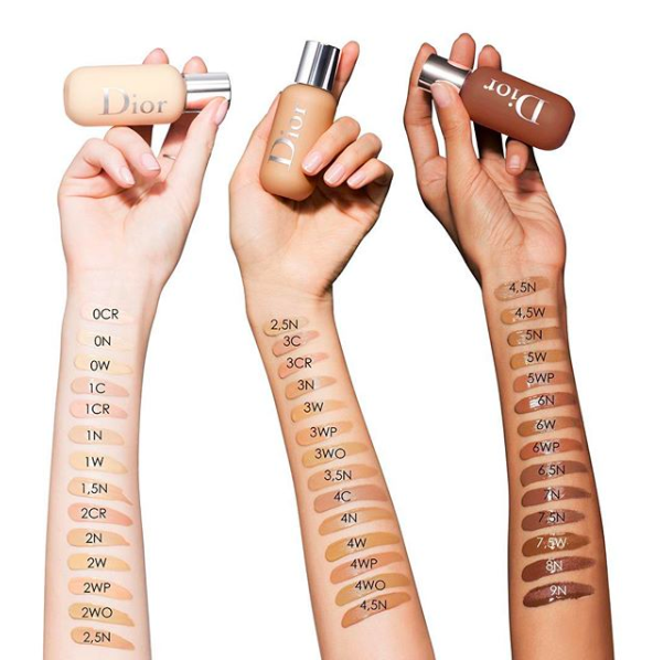 全新迪奧專業後台雙用水粉底,共有21色階,3大色調(玫瑰系、杏桃系、象牙系)、3大色階(白皙、自然、健康)的多樣選擇,不怕找不到專屬顏色(笑)。超水感的貼膚滑順質地,擁有高延展性,非常好上手,可單色重複疊擦,遮瑕力任妳隨選,想要輕透裸妝或打造無瑕底妝,恰到好處的微霧光感,讓肌膚透出自然光澤,即使重複疊擦也決不厚重,同時融入後台彩妝必備的防水抗汗特性,完美持妝長達12小時。