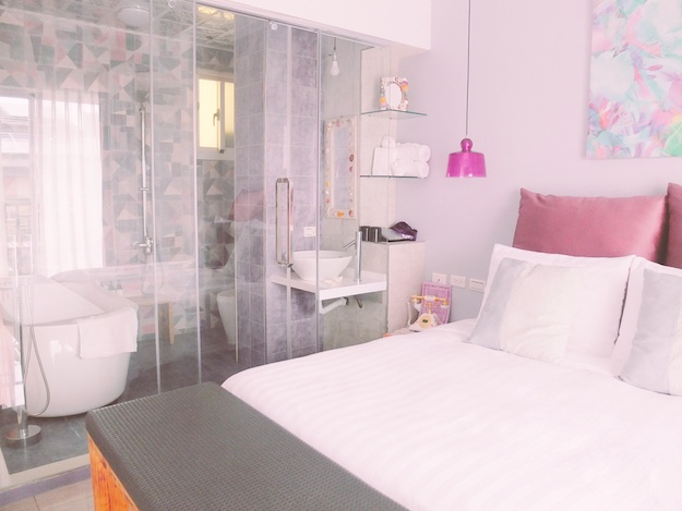 這間房還有一個很特別的地方就是浴廁是沒有隔間的,而且老闆娘堅持要在裡面放一個貴妃浴缸,雖然有點害羞,但很適合情侶一起入住啊❤︎❤︎❤︎而且後面還有自己的小庭院,晚上在這裡吹風聊天好放鬆~