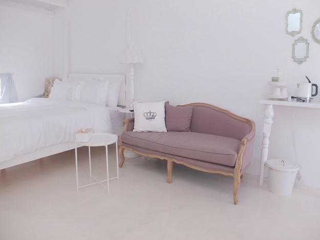 整棟民宿都是以白色系為主調,看起來卻很柔和不刺眼,民宿主人把這種顏色取做「牛奶白」。一共分成公主房、鄉村房、跟簡約房,3種房型,雖然「牛奶白」已經10年了,看起來卻仍潔白如新,對此民宿主人可是很自豪,表示他們每次退房整理都是大掃除等級的規格!