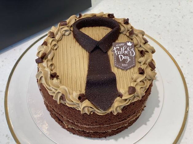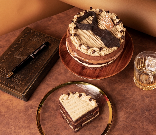 「可可公爵焙茶巧克力蛋糕」外型使用「襯衫」和「領帶」作為發想概念,打造蛋糕版本的爸爸,同時也象徵每個默默為家庭付出的爸爸,每天都要繫上領帶外出上班,雖然可能不擅言詞,但其實內心溫暖又愛家,就像包裹著鬆軟的戚風蛋糕一樣!