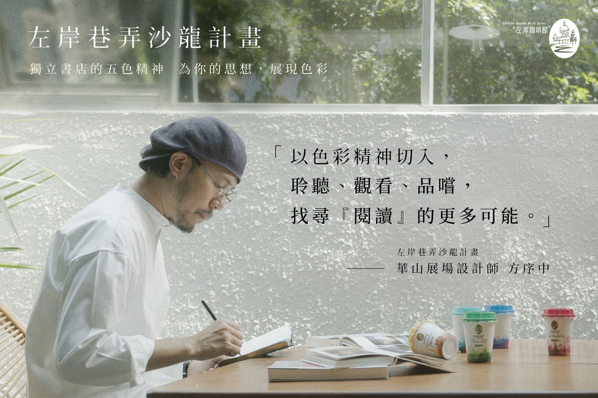 2019年左岸巷弄沙龍計畫舉辦數十場戶外沙龍座談與藝文市集活動,讓盧建彰、吳曉樂、許允樂等將近10位文青風格名人都前來共襄盛舉,活動宣傳影片累計超過400萬觀看人次,引發上百萬網友的熱烈關注與討論;延續去年的能量,備受矚目的2020年左岸巷弄沙龍計畫,即將在七月正式揭開序幕!此次,左岸咖啡館以杯身五種色彩口味延伸,呼應獨立書店的精神意象,與展場設計師方序中跨界合作於華山1914文創園區舉辦實體展覽,用色彩激發全新的閱讀體驗。