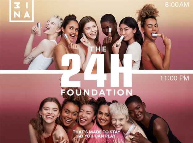最潮西班牙彩妝品牌3INA,每次推出新品都能引起極高關注與話題,除了備受熱烈討論的彩妝商品外,CP值爆棚、網友用過都狂讚的底妝商品也攻占了各大美妝平台,如爛臉救星、美肌零失控的「3in1粉底液」更是迅速熱銷,上市短短時間就登上台灣銷售TOP 5!夾帶著超夯粉底佳評如潮的趨勢,3INA再度全新震撼推出神級底妝小銀蓋「24H超時持妝粉底液」,主打擁有地表最狂持久度、能讓底妝從早晨到深夜都完美無瑕,全天候24小時超時待機不脫妝!