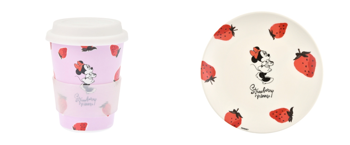 睡衣的部分採連身設計,滿滿的草莓在上面超可口!側背帆布包上以米妮為主角,像戀愛中的女孩一樣嬌羞勾起腳尖的模樣好青春;粉色的手提托特包則是很適合小資女裝便當或當外出小包使用,用了都以為自己回到18歲!