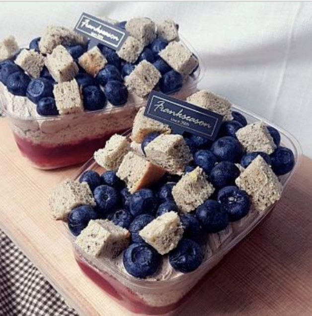 顆顆飽滿的藍莓,餡料使用師傅自製的草莓和覆盆子莓果餡,蛋糕體上面老闆毫不吝嗇地放上顆顆飽滿又新鮮的藍莓,英國伯爵茶蛋糕一點都不違和,反而讓味道層層堆疊,建議大家吃這款「便當蛋糕」時,一定要挖到底,你才可以享受到所有的滋味,有濕潤、有甜香、有多汁,多種口感一次滿足!