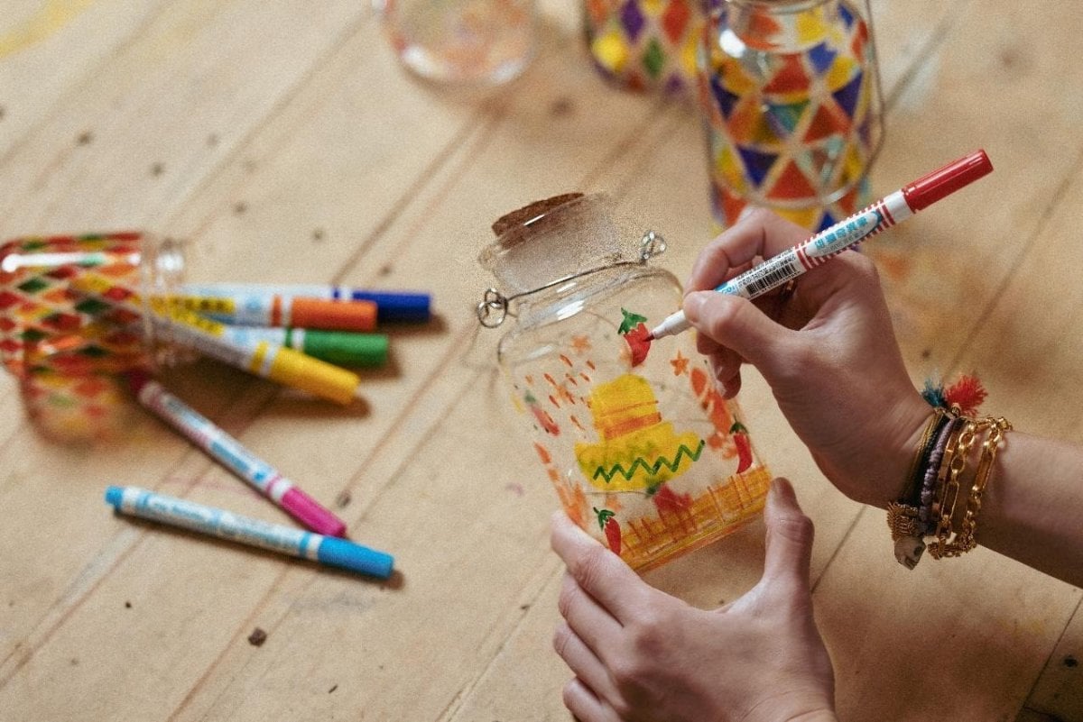 其中最可愛的就是「沙沙搖小草帽」色彩體驗!透過搖動沙鈴跟旋轉調色,讓顏料在節奏中自由流動,再用浮水印染技法創作專屬圖紋,最後變成超可愛的墨西哥小帽鑰匙圈。