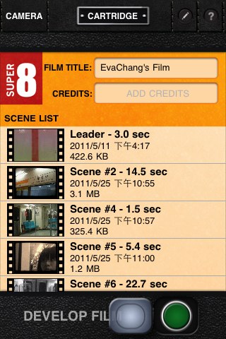 SUPER 8的操作方式其實是參考真正的8釐米攝影機而設計的,所以它在轉換頁面時,使用了「翻轉」的的手法。