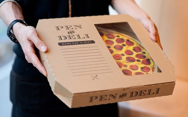 特別的是,不只內頁層次設計豐富。PEN&DELI就連外包裝也十分用心,像這款比薩如果拿在外送小弟手上,也完全合情合理啊~