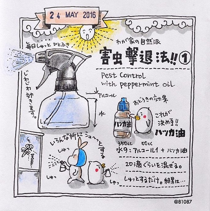 除了料理食譜之外,妞編輯還發現了這個超有用的「害蟲擊退祕笈」,只要將350cc的水、50cc的酒精和20滴薄荷油加在一起,就可以抵抗蚊子的入侵啦!(而且還不會嗆鼻喔)