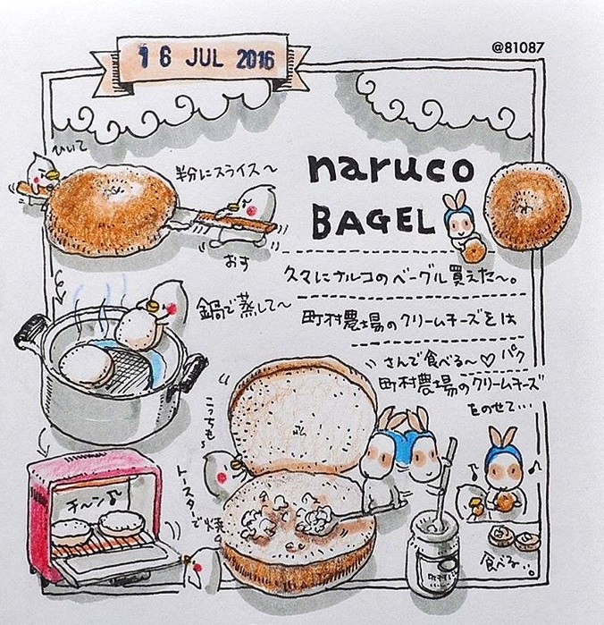 除了一般料理的做法之外,うさうさ偶爾也會分享一些食物的特別吃法,像是他吃貝果之前,居然會先把它拿去蒸再塗上奶油醬,放入烤箱,據說這樣會讓貝果的軟硬度更加順口喔!