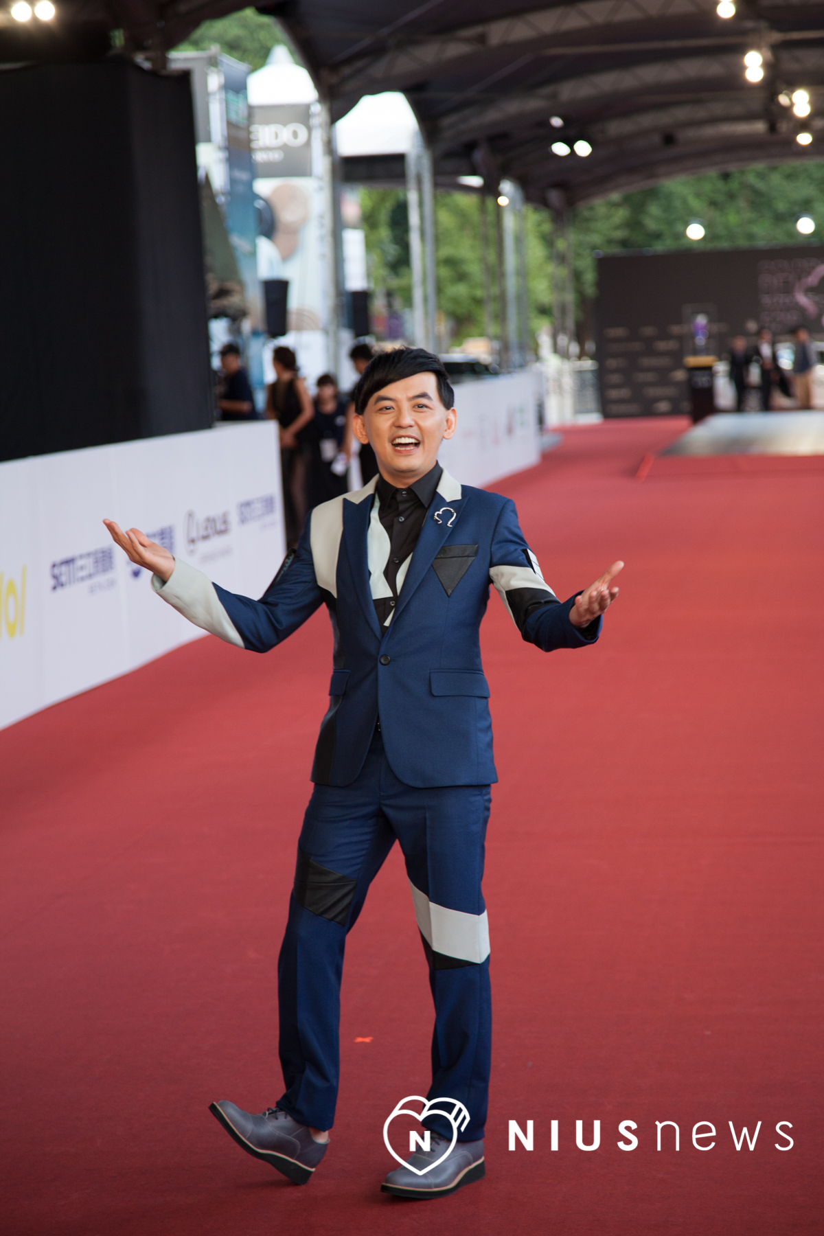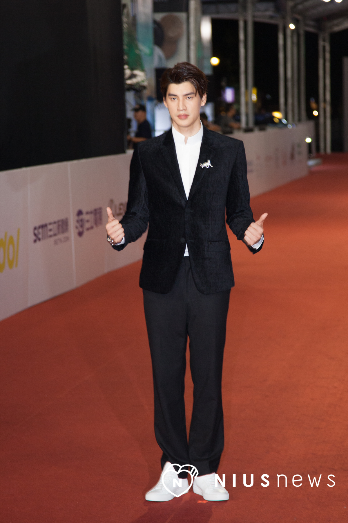 Spexial的團長宏正一登場就殺、光、底、片!走紅毯宛如在走T台,高挑的他穿什麼都帥到不行,簡單的黑白穿搭,宏正以天鵝絨西裝外套,配上白色休閒鞋,實在太有貴族氣息啦~