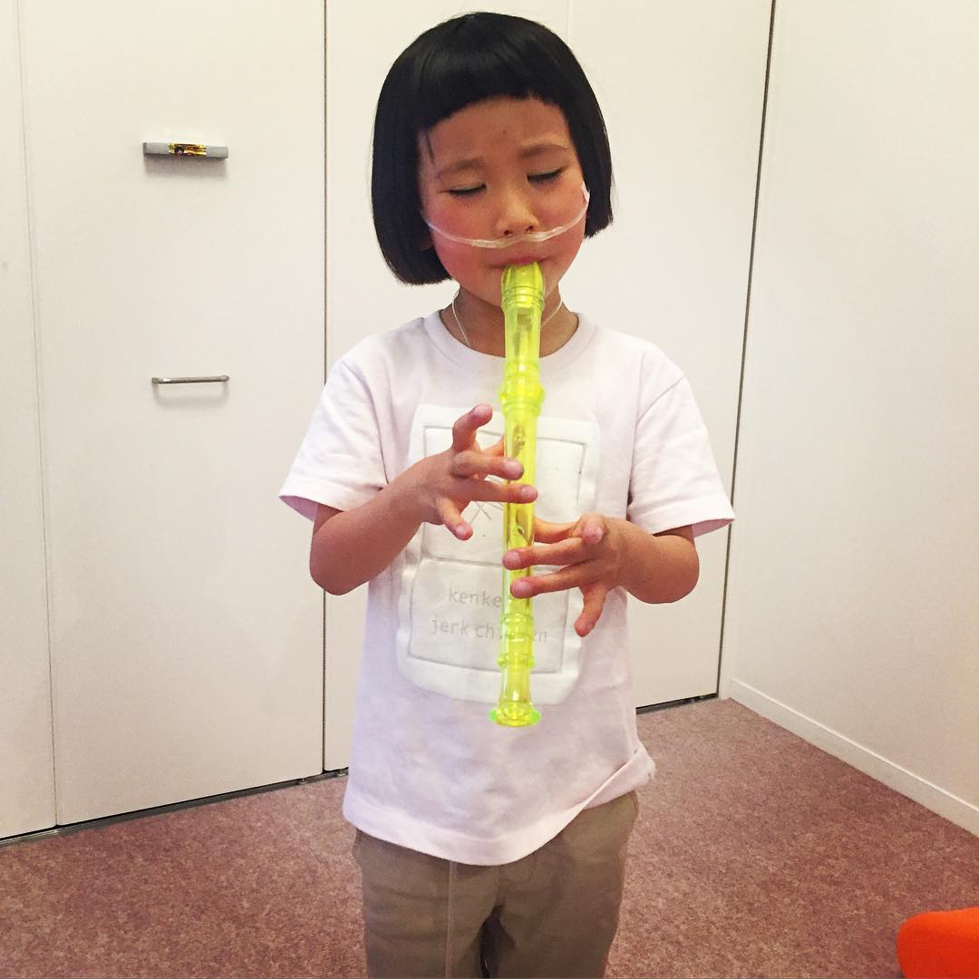 媽媽笑稱Milka的笛子演奏其實是笛攻擊,這麼投入的表情真的太Q啦。