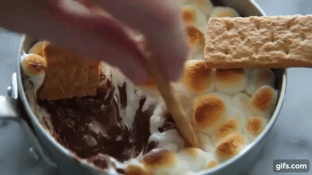 用餅乾沾取烤好的棉花糖巧克力,然後放進嘴巴裡~~~