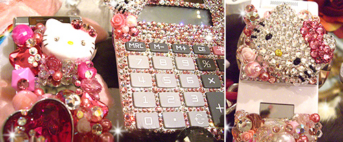 其實這是從日本開始流行的一件十分少女心的事情,幾乎所有的東西都要貼水鑽,而且貼越多就越時尚,就連計算機、原子筆、相機等,只要你能想到的東西,就一定要貼鑽。而且不管是手機、鑰匙還是包包,能掛吊飾的地方,也一定要掛大串到可能連包包都放不下的吊飾...當時真的每個女孩都超「哈日」的吧!(是有多久沒用到這個詞XD)