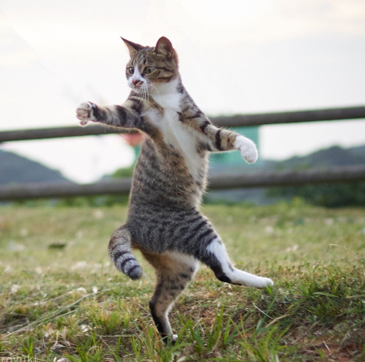 這隻貓貓有沒有給人一種融入早上公園太極團也無違和的感覺?那個扭腰、抬腳跟手的pose我給一百分!