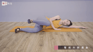 做完大腿運動之後,我們接著做臀部的外側及後側訓練。這個訓練需要準備一張瑜珈墊及彈力帶,如果沒有墊子的話,可以用大毛巾鋪在地上代替,如果沒有彈力帶的話,記得保持身體以及雙腿的平穩,或是用長條的毛巾。