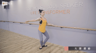 做完大概八次之後,將膝蓋向外撐開,做Passé(單腳曲膝抬腿)。