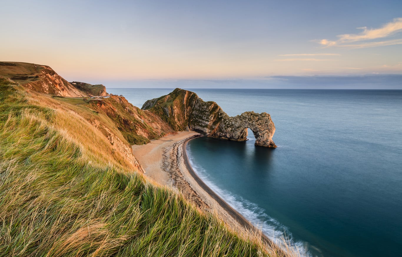 最讓人難忘的奇景就是杜德爾門(Durdle door),由石灰石矽酸鹽構成的岩石,是140萬年前,在自然海浪的侵蝕的結果下形成的,如今成為這片海灘的地標。比附近岩石更加堅固的它,遠看是不是很像一隻鴨子,正低頭下去飲水?