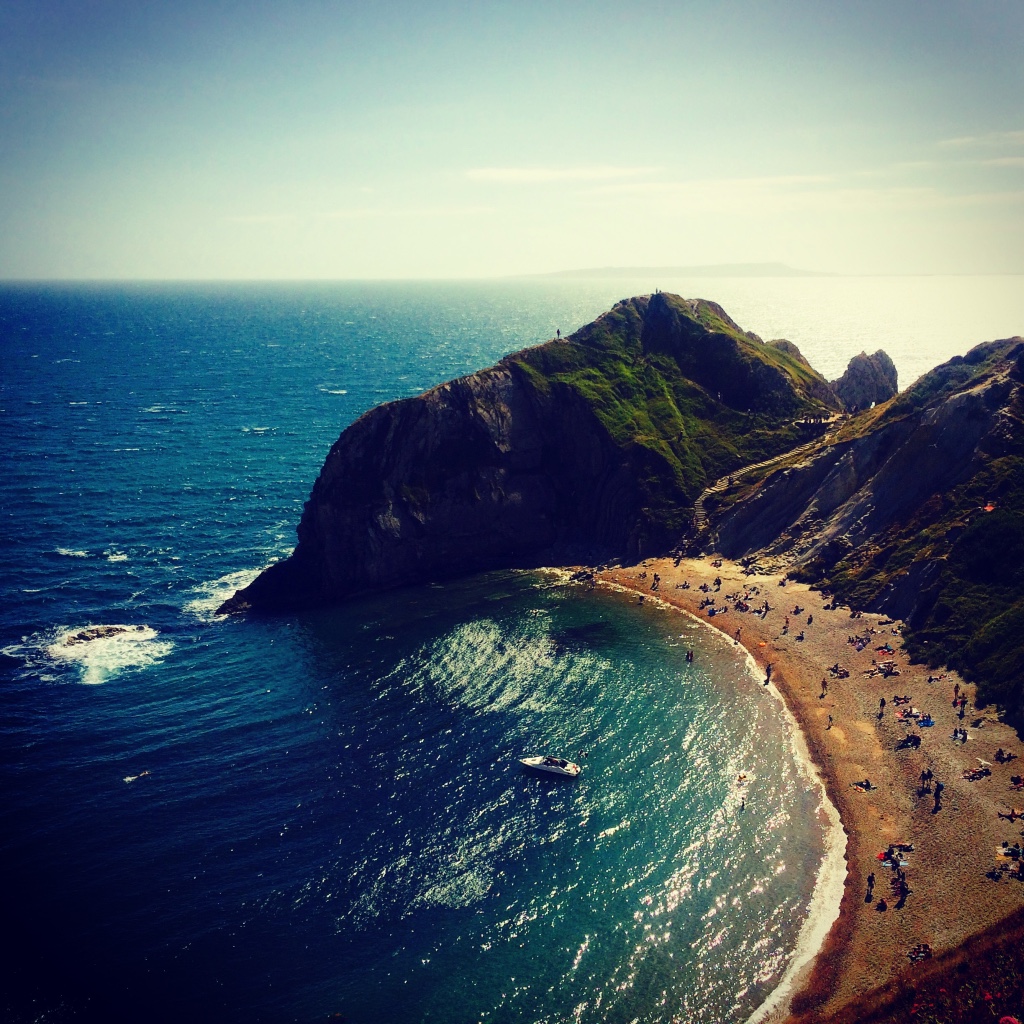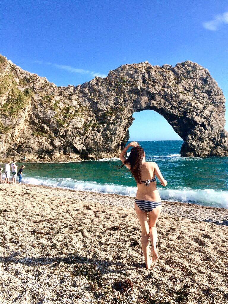 很幸運剛好在有太陽的時候來,但別以為夏天的海就是適合游泳的,海水根本冰得不像話,但對習慣零下氣候的老外而言,已經算能下水的氣候了。侏羅紀海岸真的美得不像話,有山、海、峭壁等多種壯觀地形,非常推薦一定要來見識本尊。