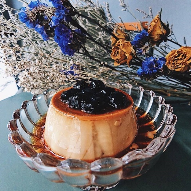 綿密軟內的珍珠奶茶布蕾,出自於台北的「Ctrl+F Brunch & Café」,珍珠熬煮的熟度剛好,口感Q彈咬起來不會硬口,店家更施了點「小心機」,在爽口甜香的奶茶淋醬上,撒上適量的紅茶碎葉,讓整體的茶鄉風味更加濃郁!