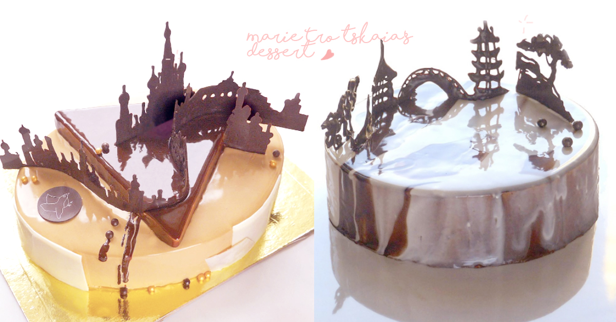 在莫斯科唸一唸建築後,跑到巴黎念了3間甜點學校,然後又到美國邁阿密的甜點店實習。就這樣過了兩年,Marie開始創作屬於自己的藝術蛋糕。