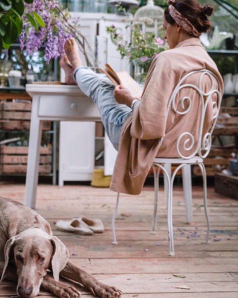 這個超美的玻璃花房,可是由Manuela一手打造,她在裡面放了舒服的大沙發,還有一個白色書櫃,上面不僅放書,還有美麗的花器。只要待在這個與大自然融為一體的空間裡,就能感到舒服又愜意。