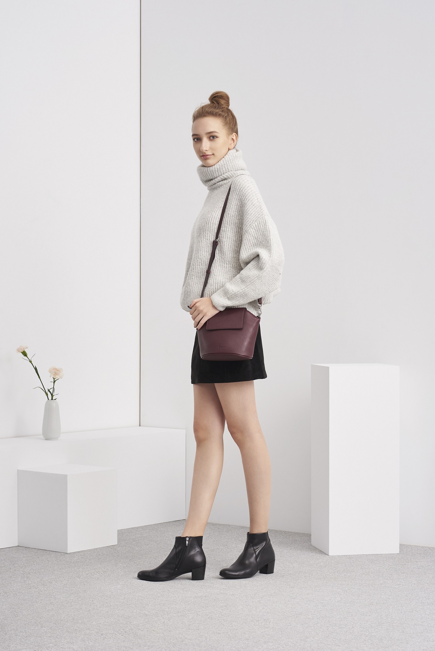 裙裝的優雅裙擺加上跟靴,柔美搭配俐落的時尚線條,在步伐間透露出都會女性的自信美。