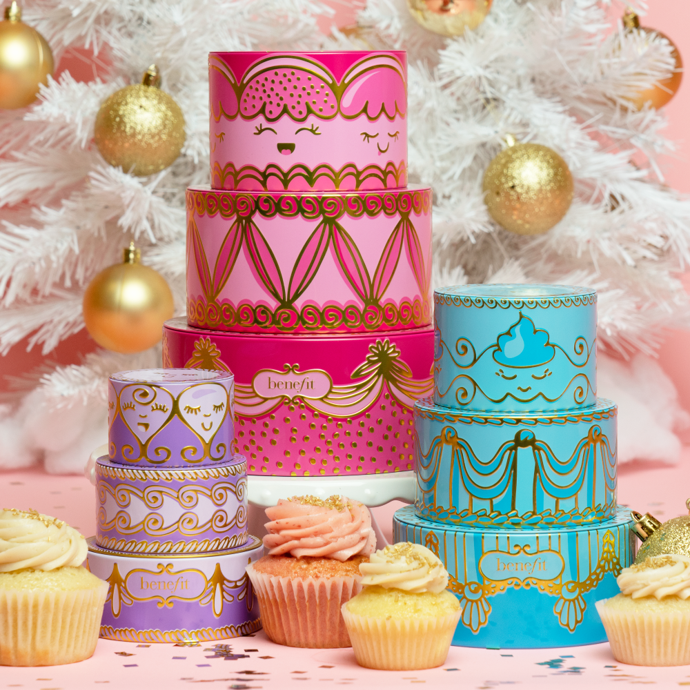 benefit貝玲妃每年週年慶推出的限量錫盒都讓眾多美妝愛好者搶破頭! 今年也不例外,為了歡慶週年慶特別以童趣可愛的三層蛋糕盒造型亮相! 要陪所有的Benebabe們天天過生日,跟壽星一樣集萬千寵愛於一身!而今年限量錫盒的產品各個都是品牌暢銷經典人氣商品!